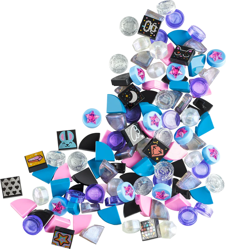 Brighten up your world with this sparkly bag of Extra DOTS! Make endless patterns and combinations with the colored, glitter, opalescent and 3D-effect star tiles, plus 10 surprise decorated tiles out of a possible 16. Add them to your other customizable LEGO® DOTS design sets to express yourself and show off your creativity. Decorate your life your way! Which tiles did you get? #youDOTyou