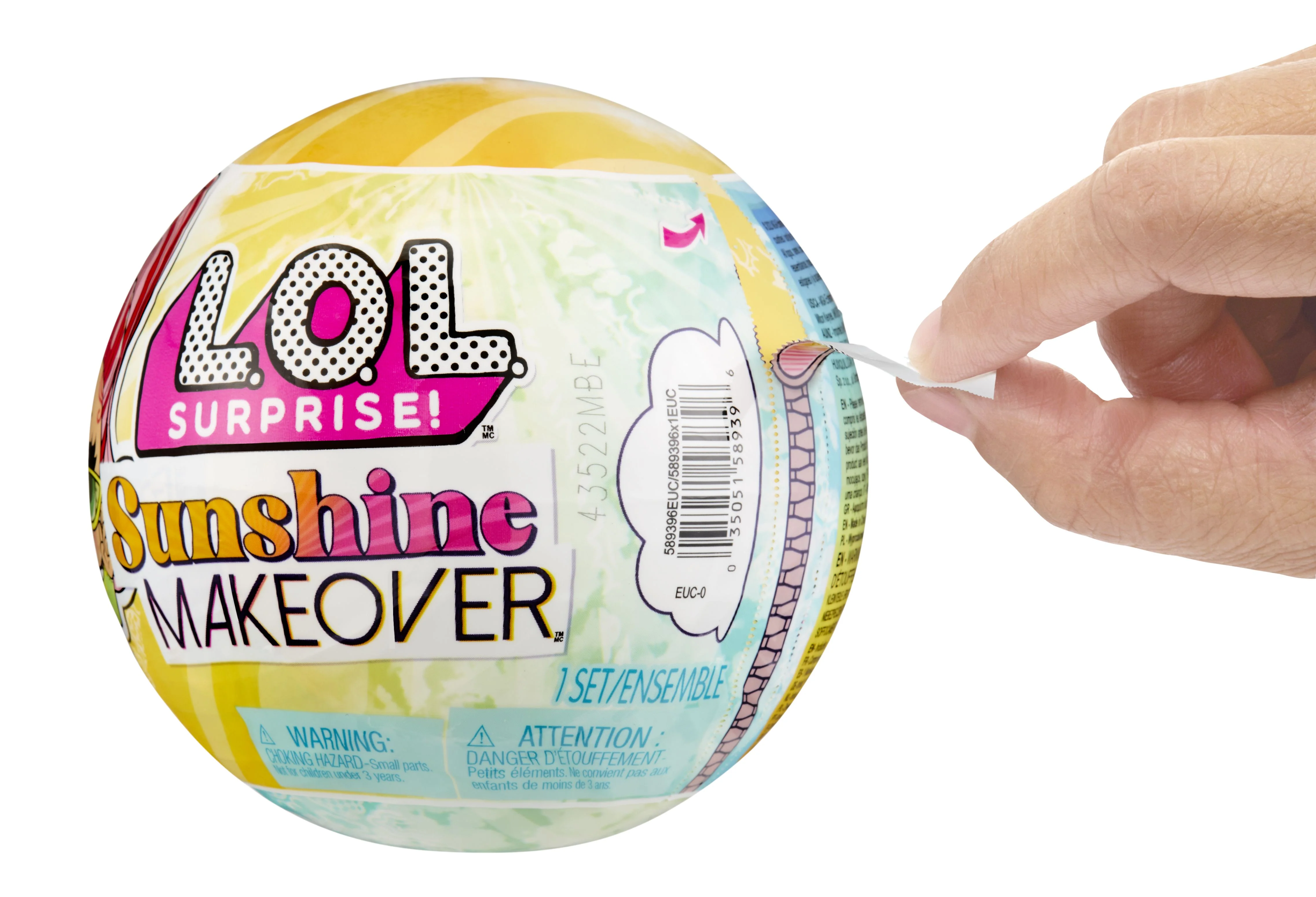 Introducing L.O.L. Surprise Sunshine Makeover™ with brand-new UV color change! Simply take your tot into sunlight to watch the color change reveal! Each Sunshine Makeover™ doll has her own unique color change transformation her fashion, hair, or makeup/body! Watch the color change disappear and reappear when you take your tot from shade to sun and back. Unbox 8 surprises including fierce fashions, detailed accessories, and a secret message for you to uncover. Feed your doll for a water surprise!