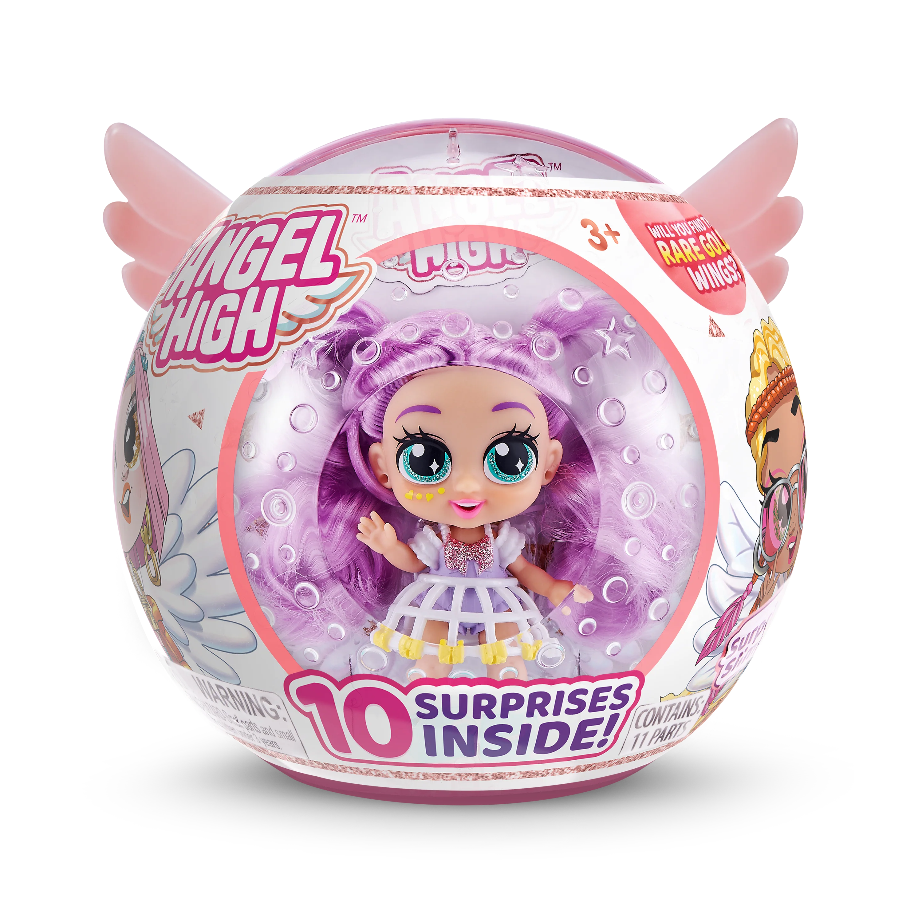 Welcome to Angel High the place where fashion and friendship rule and everyone is welcome! These Angel High Dolls are helping friends from the clouds above with sparkle style and love. Unbox your doll and then find the 10 layers of surprise! Style her with an all NEW Swappable Outfit and Mini Wings and style her hair with a Brush and the Color Changing Hair Clip and Extension! Every capsule comes with your very own Angel Wing accessories to match your Angel High dolls glam look! You can even mould your own Angel Cloud for your doll to use at Angel High! There's 6 magical dolls to collect. Price is for 1x Doll.